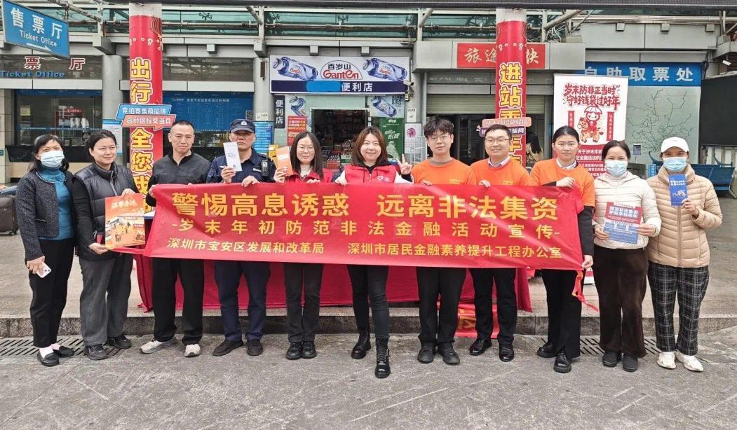 岁末传温暖,防非不松懈,为进一步做好深圳市金融教育宣传与防非宣传工作,提升居民金融素养和防范金融风险意识,营造祥和的春节氛围,在深圳市地方金融管理局等金融监管部门的指导下,深圳市宝安区发展和改革局、深圳市交通运输局宝安管理局、新安街道办事处的支持下,2月9日-10日,深圳市居民金融素养提升工程办公室组织平安银行汽车消费金融中心、浦发银行深圳分行、东方证券深圳分公司及辖区营业部等机构,走进宝安汽车站、前海壹方城开展岁末年初防范非法金融活动宣传。