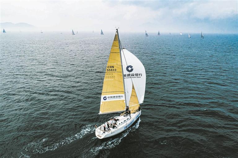 “中国杯”帆船赛上“建行号”扬帆起航。
