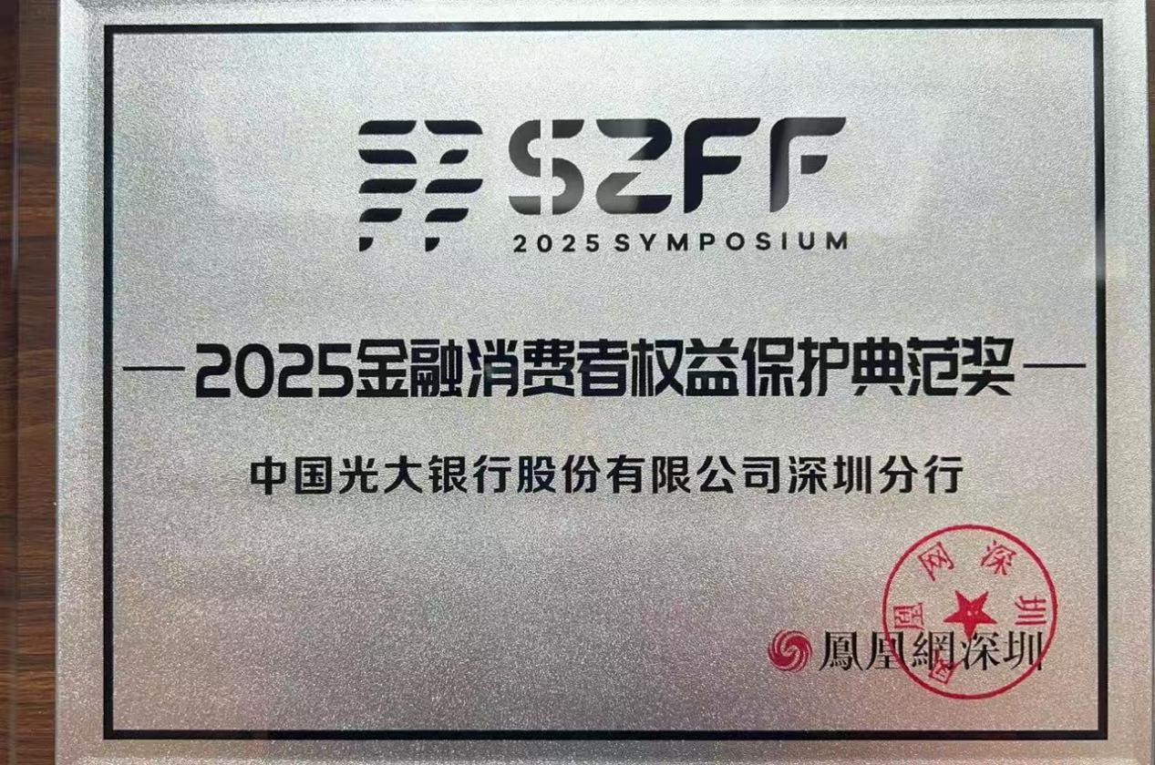 光大银行深圳分行在消费者权益保护领域坚持体系化建设、深化创新实践,荣获“2025金融消费者权益保护典范奖”,崔子介、李享、王亚文、梁金玲、石栩涵多名员工荣获“2025金融星光人物”。多项荣誉是对该行牢固树立“金融为民”宗旨,积极构建多层次、广覆盖、有温度的金融消保生态,持续提升市民金融素养、筑牢资金安全防线的高度认可,彰显了光大银行深圳分行在服务民生、守护安全方面的责任担当。