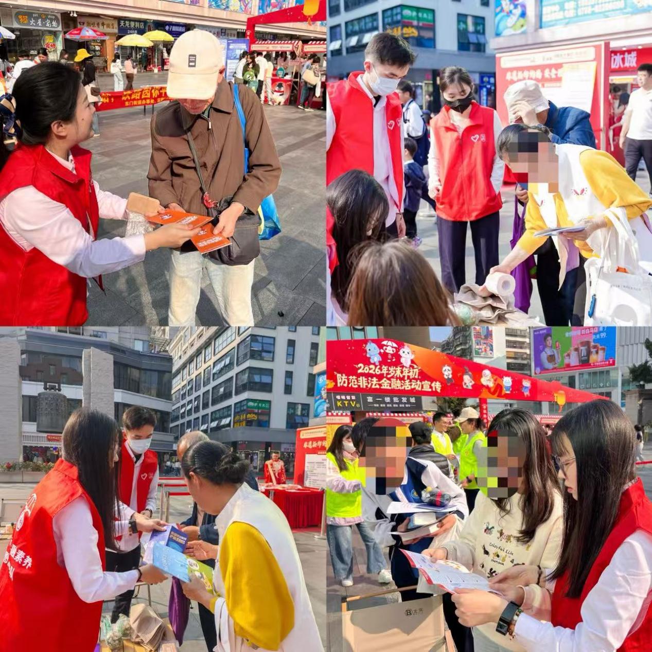 岁末年初,正值万家团聚之际,也是非法金融活动频发之时。为了深入贯彻国家金融监督管理总局深圳监管局的工作部署,推动中国人民银行深圳市分行、国家外汇管理局深圳市分局“金融为民”暖心工程落地见效,在总行和分行党委的坚强领导下,中国光大银行深圳分行联手深圳市居民金融素养提升工程。1月27日下午,走进东门老街开展岁末年初防范非法金融活动宣传。
