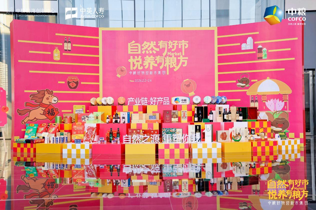 市集现场不仅汇聚中粮旗下家佳康、福临门、中茶、长城葡萄酒等品牌好物,更设置养生能量站、AI焕春互动、怀旧游戏、心愿打卡等体验场景,生动传递“自然滋养、身心悦活”的生活主张。结合中粮“自然之源”的产品优势与中英人寿“悦养健康”的品牌理念,公众在品味健康年货、参与趣味互动的同时,充分感受到了新春的温暖与活力。