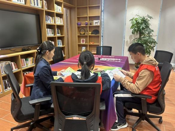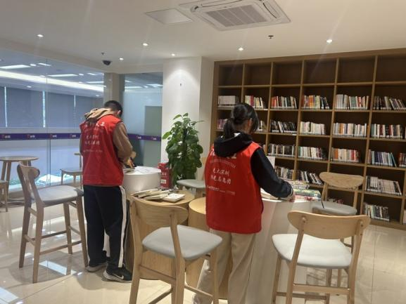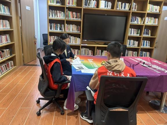 与此同时,亲身参与义工服务实践,协助维护图书馆阅读秩序,向到访读者发放反诈反洗钱宣传折页,耐心讲解金融安全常识,尤其是针对老年群体进行重点提醒,帮助其增强风险防范意识。使到访读者既感受到书香与金融服务交融的和谐共鸣,也让志愿者们在志愿服务中培养责任意识与服务精神,实现了从科普到责任的深刻跨越。
