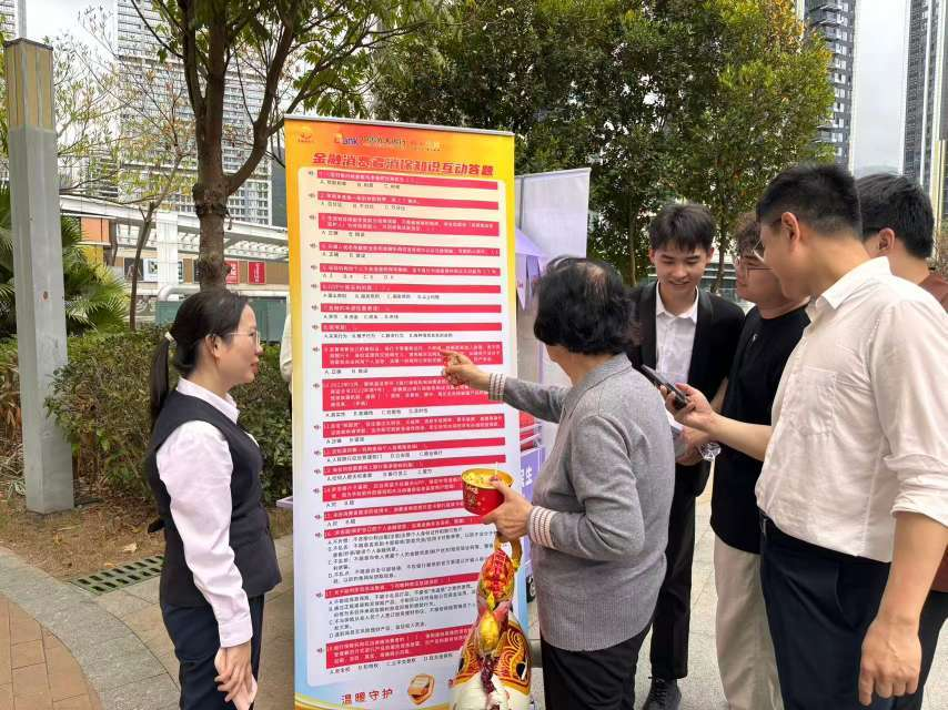 光大银行深圳大学城支行则将“金融消保伴我行”的主线贯穿于宝能城东区花园的元宵活动中,一场“场景化宣传教育+互动式答题”吸引了社区居民热情参与。