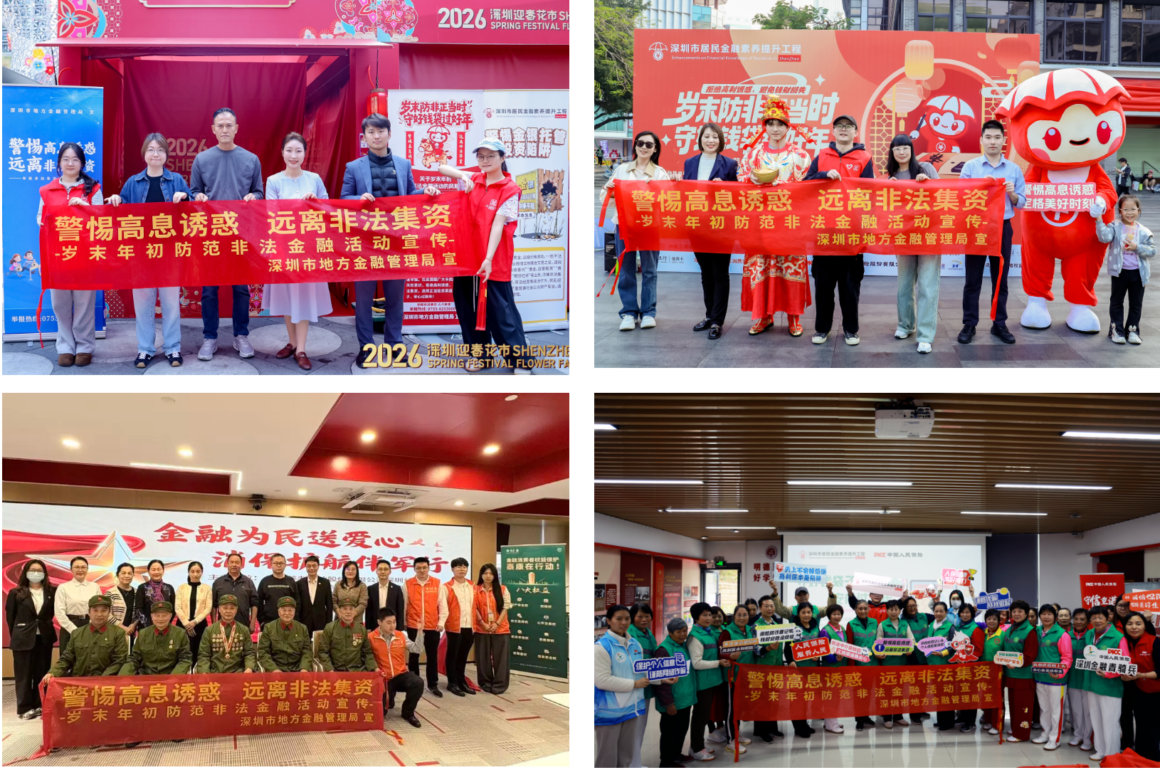 为构建防范化解地方金融风险长效机制,做好深圳市金融教育宣传与防非宣传工作,切实提升居民金融素养,在深圳市地方金融管理局等金融监管部门的指导下,深圳市居民金融素养提升工程办公室结合岁末年初人员流动特点、民风民俗等,精准施策、协同推进,聚焦重点人群,组织超40家金融机构于2025年12月至2026年2月在全市11个区举办26场形式多样、有特色、接地气的防非宣传活动,发放近2万份宣传资料,线上线下全渠道传播触达超450万人次,充分扩大防非声量。