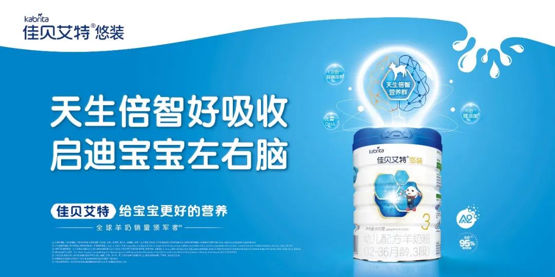 基于此,佳贝艾特悠装Pro系列羊奶粉提出“天生倍智好吸收,启迪宝宝左右脑”的产品理念。