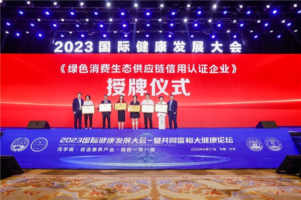 在授牌仪式中,首批获得《绿色消费生态供应链信用认证企业》的企业包括浙江桑芝园中医药科技有限公司、浙江金亚麻实业有限公司、株洲市道蕴生物科技有限公司、世界诺丽(山东)生物工程有限公司、广东旭睿美医疗科技有限公司以及新疆灵恩赐中草药有限公司等。这些企业的表现得到了峰会的高度认可,他们在绿色消费生态链建设中取得的突出成就,为健康产业的可持续发展树立了榜样。