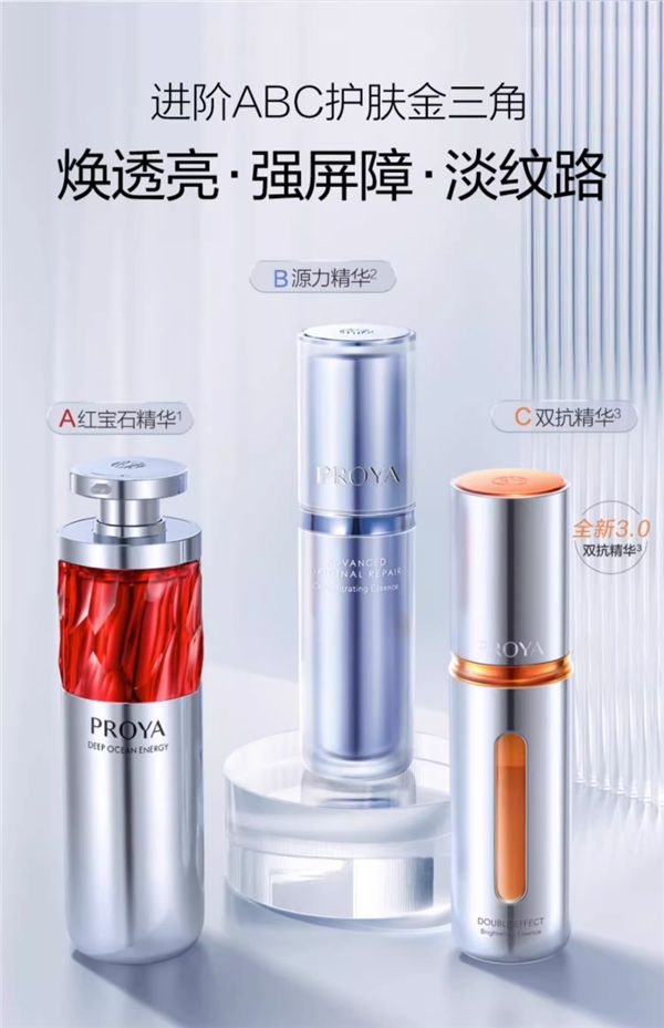 2020年,当时国内护肤市场还在流行单一成分和爆品的大环境下,珀莱雅开始践行大单品策略,“早C晚A”王牌套组自上市后创造了1000万的销量,受到消费者口碑认可,成为最早预见并持续带动中国市场“早C晚A”护肤趋势的中国品牌,引领科学护肤潮流;2021年对大单品进行升级和品类拓展;2022年已形成了“红宝石、双抗、源力”三大核心大单品家族系列。