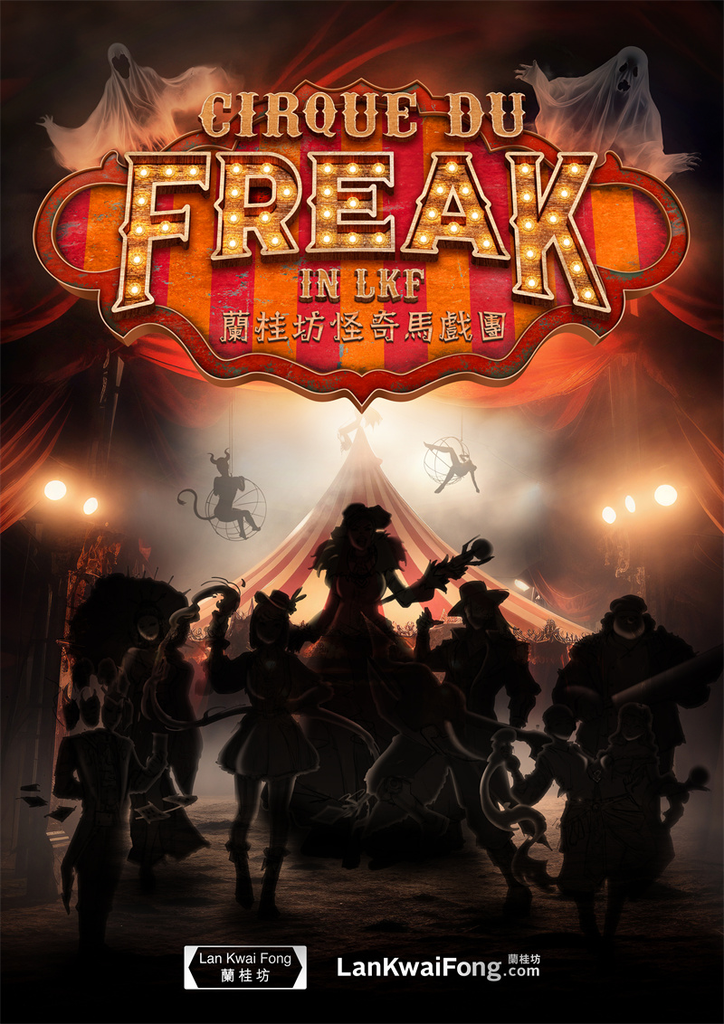 由10月中开始一直到万圣节,蘭桂坊的街头将变成一个令人身临其境的超自然世界。街头的暗黑马戏团彩旗上,怪奇马戏团的暗黑角色俯视众人,营造出超自然的诡趣氛围。令人不安的小丑在空中摇摆,马戏团成员在街头游荡,向途人发出诡异的邀请。同时加州大厦亦架起“怪奇马戏团”的大帐篷,大家千万不要错过在不同餐厅里令人脑洞大开的表演。