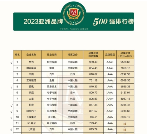 亚洲品牌盛典素来享有亚洲品牌年度“奥斯卡”之称,而“亚洲品牌500强”排行榜更是以其专业性和广泛的影响力受到各界瞩目,被誉为“亚洲品牌发展风向标”,对于了解亚洲各国家和地区的品牌发展状况以及未来发展趋势具有一定的参考价值。