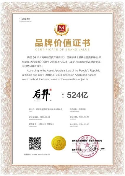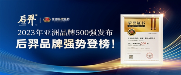 9月25日,由专业品牌评价机构Asiabrand发起主办,中国亚洲经济发展协会、一带一路总商会、《环球时报》社、东盟-中国总商会、亚太第一卫视和香港中小企业发展促进会联合主办的“第18届亚洲品牌盛典”在香港隆重举行。众多国际知名品牌齐聚一堂,后羿品牌凭借卓越的品牌影响力,成功跻身“亚洲品牌500强”,位列307,品牌价值评估为524亿!