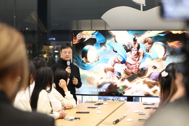 10月16日晚,Apple CEO Tim Cook现身Apple成都太古里,并参与了一场Today at Apple课程。期间,腾讯互娱天美L1工作室总经理、Honor of Kings制作人黄蓝枭与Tim就技术问题进行了深入交流,并与他一起观看了一场王者荣耀BO3表演赛。