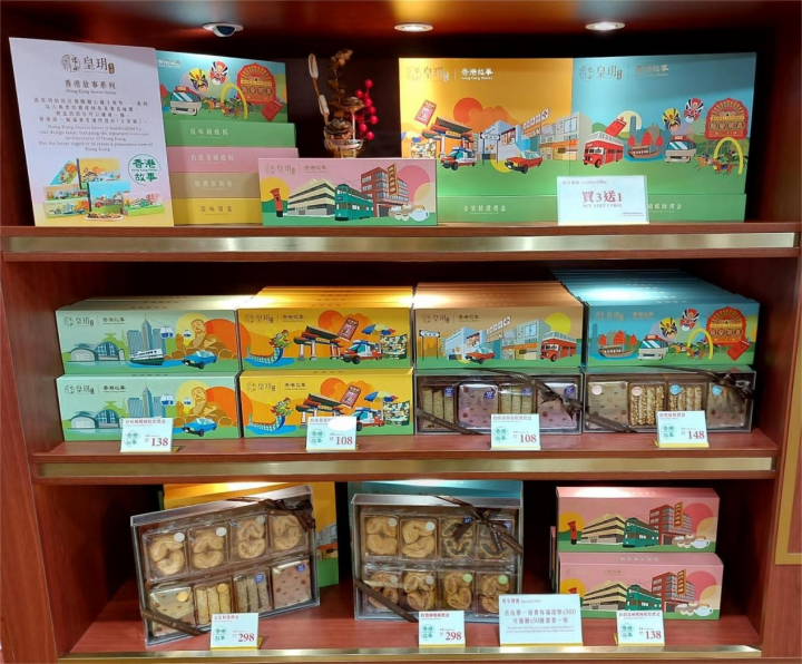 吃完午饭我们步行5分钟到太子道西MOKO一楼「香港皇玥」买手信,在香港随处可见皇玥门店,他们家除了流心月饼出名之外,饼食类也很优秀哦!蝴蝶酥系列和脆条系列我很喜欢,一进门皇玥香港故事系列映入眼帘,多巴胺颜色和手绘香港代表性建筑真的很精致,这个系列也包含他们的断货王原味蝴蝶酥和伯爵茶蝴蝶酥,以及我最喜欢的脆条,精装脆条礼盒包含杏仁和榛子2个口味,入口淡淡的坚果香和榛子酱的清香,也能吃到粒粒分明的杏仁碎和榛子碎!