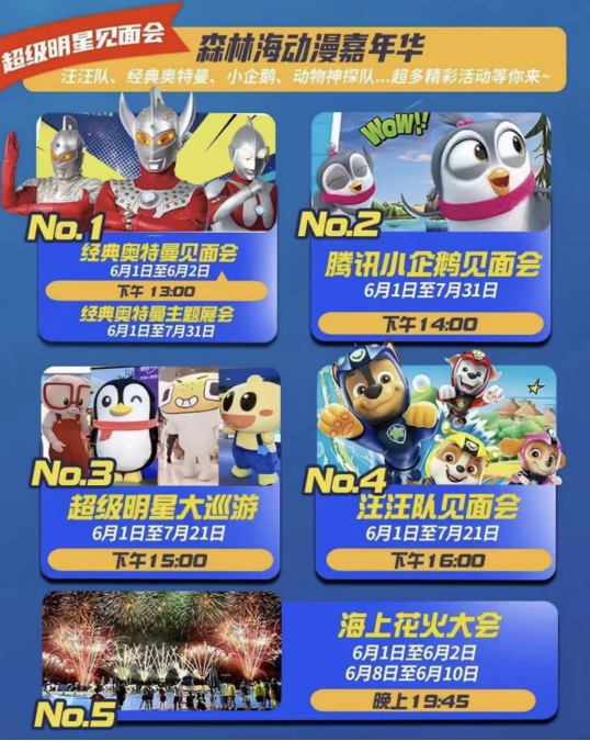 从森林海获悉,2024年5月至7月,为期两个多月的“超级嘉年华”活动已拉开帷幕,该嘉年华活动由森林海和国内领先的视频平台腾讯视频联合举办。大家所熟悉的一些动漫明星,奥特曼、汪汪队、人鱼同学、动物神探队、超迷你战士、腾讯小企鹅等都将与游客见面。超级嘉年华IP明星为官方正版授权,经典角色再现,让广大游客身临其境。