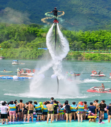 森林海还推出“海上花火大会”大型烟花秀表演,一经推出便成为了具有森林海标识的王牌节目。在即将到来的儿童节(6月1日-2日)、端午节(6月8日-10日)的每晚19:45分,“海上花火大会”将准时与广大游客见面,水上激光秀、音乐、烟花等水陆空联袂呈现,让大家享受一场视觉和狂欢盛宴。没能在六一、端午节点来此游玩的游客也不用担心,在暑期森林海还会隆重上演“海上花火大会”的烟花秀节目。