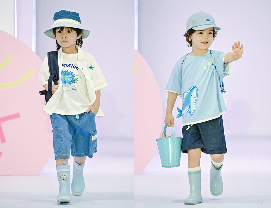 此次童装秀服装均来自全棉时代2024夏季新品,棉花做的防晒衣,穿在身上凉凉的,不闷皮肤的同时还有智能光变的神奇魔法,让孩子们的户外时间远离紫外线。穿在身上就像空气一样的儿童褶皱纱家居服,居家活动或睡觉穿着都没有束缚感,尽情释放孩子好动的天性。还有减少粘腻、遇水生花的凉感T,只挡蚊虫不挡凉风的防蚊裤等。这些更懂孩子快乐和不快乐的设计,带走孩子们日常生活里的小烦恼,成为上学、玩耍、户外、睡眠等每天常驻的快乐。
