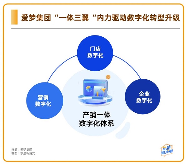 综合研究分析可见,爱梦集团在数字化探索中,遵循着一个核心体系和三大方向。即构建产销一体数字化体系,提升营销数字化,创新营销策略及技术手段,扩大品牌传播和影响消费决策;门店数字化,迭代经营模式、优化门店运营、升级消费体验;企业数字化,产销一体化协同、提升企业运营效率——形成数字化转型的三翼。