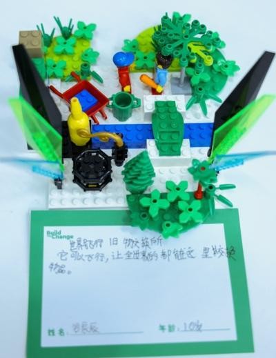 孩子们通过创意拼搭作品表达对零废弃未来的畅想