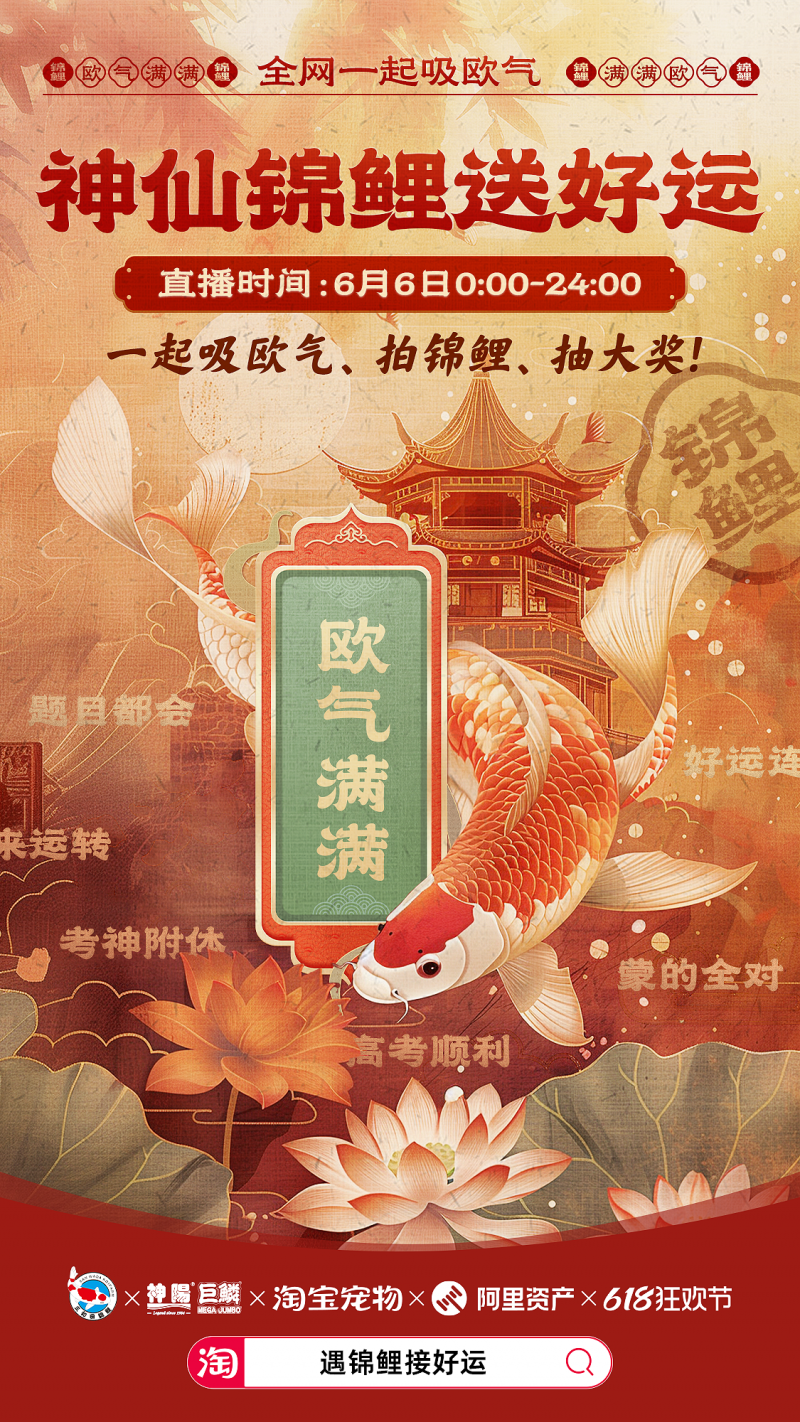 据淘宝商家“神阳旗舰店”介绍,最近正好赶上618的活动,再加上临近中考高考,不少人会过来买锦鲤和饲料等,讨个“鲤鱼跳龙门”的好彩头。“我们特意选择在高考前一天为大家里24小时直播锦鲤,也是希望能把锦鲤的美好寓意送给每一位正在收看直播的朋友们,大家一起来吸欧气。家有考生的家长也可以来直播间为自己的孩子加油打气。”该商家表示。