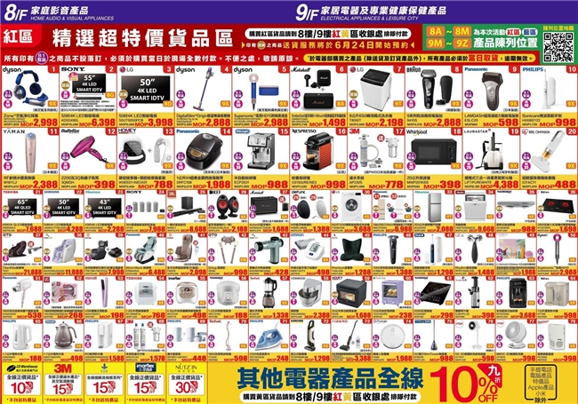 至于电器及家具广场,各式电器及家居用品都有不同程度的优惠折扣,精选床品百元起,最潮「戴森」电器低至38折起!定能满足各生活达人的心意。
