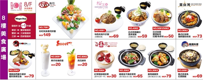 八楼美食广场亦汇集了各种不同风味的餐厅,从韩式、日式到泰式等东南亚洲料理,VIP DAYS贵宾日期间更推出了限定菜式,一地尽尝各国风味特色美食。