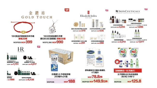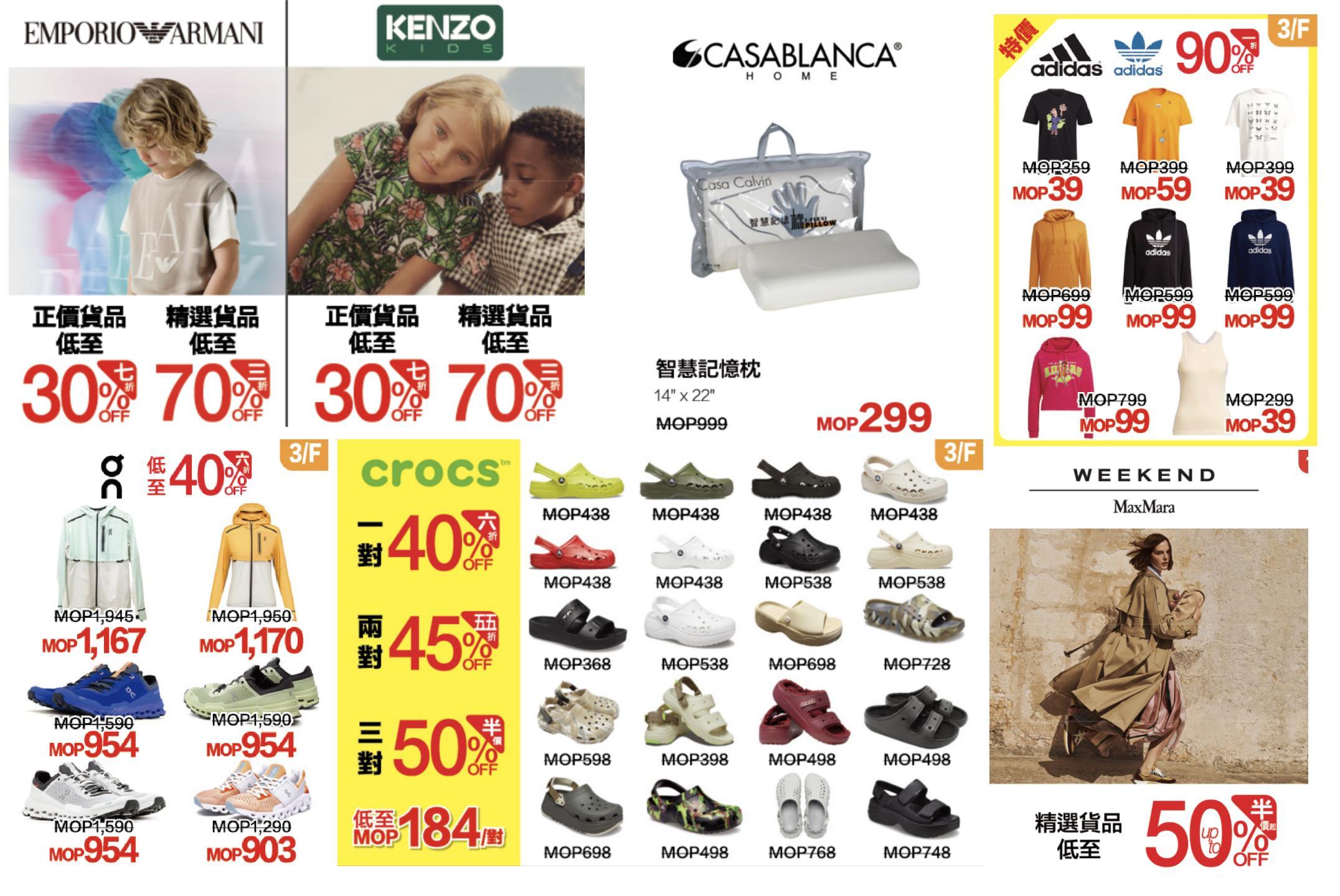 多个男女时尚潮牌,“麦丝玛拉”、“卡尔文·克雷恩”及“伦敦男孩”等特选商品低至MOP275起!多到数之不尽、风靡时尚圈的品牌亦已登陆,誓必以惊喜折扣为您带来潮味十足的风格! 同时不用千元就能购入18k白色黄金钻石吊坠,为节日送礼提供超值选择!