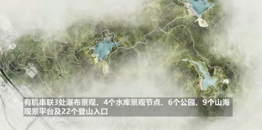 半山公园带以现有风景区、森林公园、绿道和登山环道为依托,将新建或改造69公里半山健步道,有机串联 3 处瀑布景观、4 个水库景观节点、6 个公园、9 个山海观景平台及 22 个登山入口。整体建设将打造成具有盐田特色的“生态翡翠项链”,也将成为深圳新的生态旅游名片。