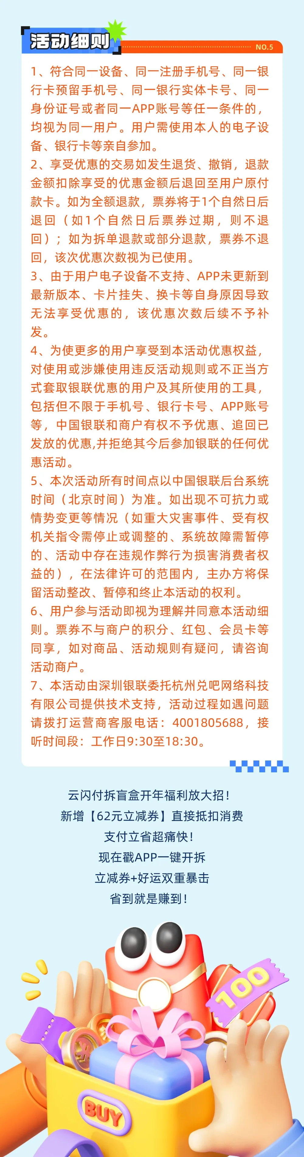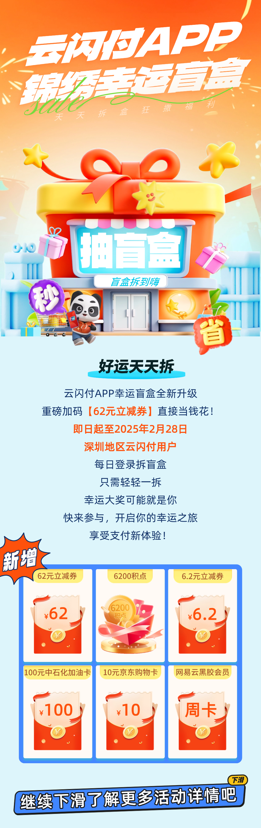 62元立减券等你来抽!云闪付APP幸运盲盒全新升级