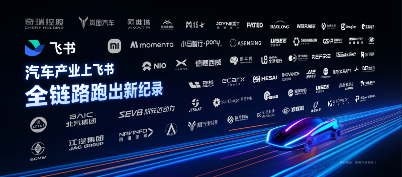 “蔚小理”上飞书第五年,TOP30新能源车企超七成用飞书