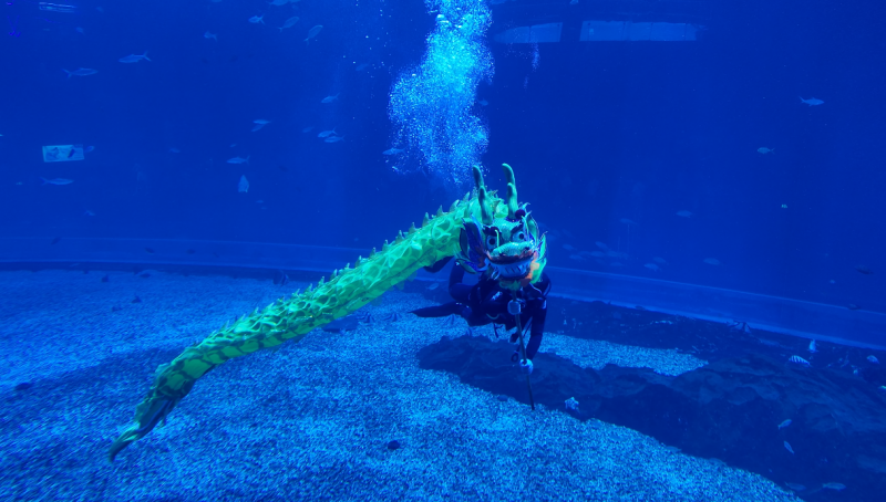 双节期间,小梅沙海洋世界将非遗文化与海洋演艺深度融合。“鱼戏莲叶间/鱼龙舞” 环节巧妙融合传统民俗与海洋场景,让古典意蕴与海洋活力碰撞出独特火花;“民族巡游方阵” 更汇聚多项非遗技艺,既有精彩展示,也开放沉浸式体验,为游客开启一场兼具文化深度与国潮魅力的独特旅程,让孩子在欢笑中感受节日仪式感。