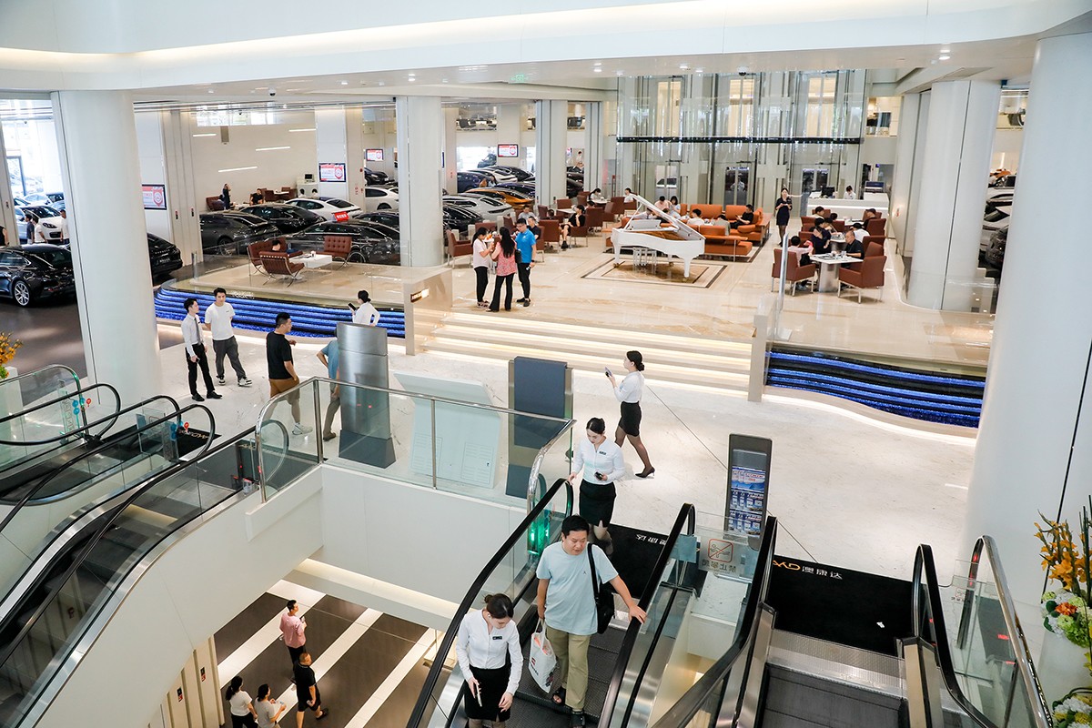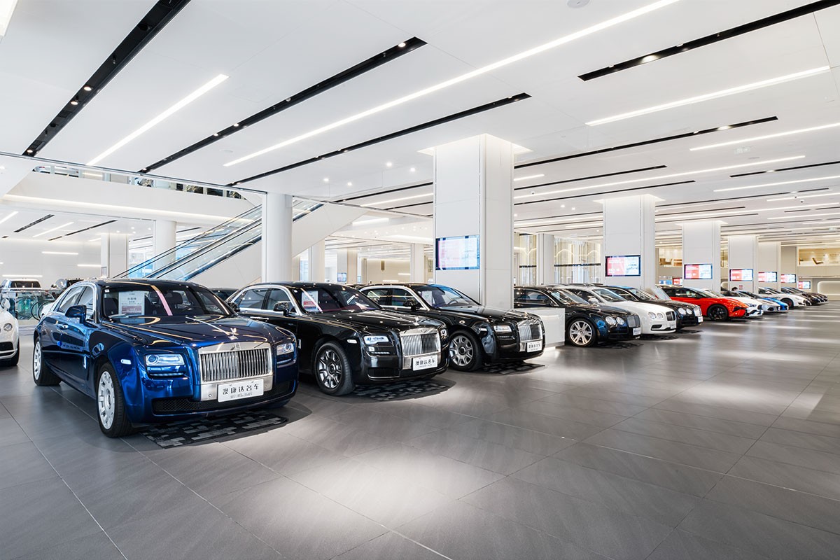 澳康达名车广场是定制化的二手车综合体,融合了全球多个知名汽车建筑、国际机场、奢华酒店及高端商业空间后,历时多年打造而成。内部主要以便利汽车交易为目的进行设计和布局,包括车辆摆放、评估收购、金融中心、售后中心等都有讲究,强调功能性。以深圳澳康达为例:从负一楼到五楼是汽车展厅,从六楼到八楼是售后中心,1M是车管所服务站.....基本上买车、卖车、售后、车贷、牌证过户等相关业务都能在澳康达大楼内完成,其它城市的门店也都是参照深圳店进行的布局。展厅空间大,可以容纳大量的展车,这使得客户可以轻松地比较不同品牌和车型,从而做出更好的选择。