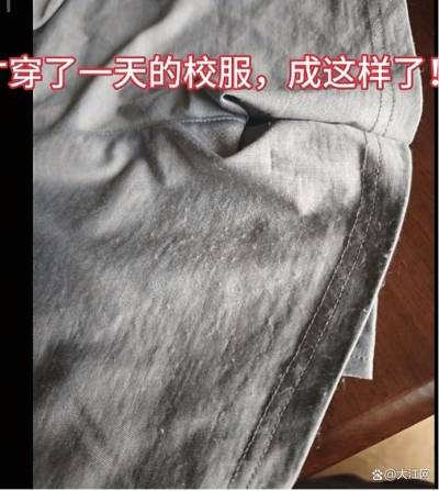 “一市一款”的僵局,首先体现在质量防线的崩塌。江西赣州的烟酒店、小卖铺里,无资质作坊生产的“高仿校服”与烟酒混放,省略甲醛处理、色牢度测试等关键环节,成本比正规产品低30%,家长仅凭外观根本无法分辨。网友“桃之夭夭”在抖音发布视频称,为读小学的女儿在拼多多网购了“校园达人”牌夏装校服,只在开学首日穿了一天,裤装面料就出现了起球的情况;南昌家长群里,“洗两次缝线崩开”“校徽脱落”的投诉刷屏,即便通过学校推荐渠道采购,仍能发现领口歪斜、拉链卡顿的瑕疵。