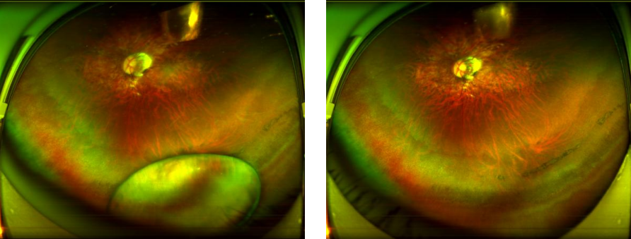 图:欧叔术前(左)术后(右)眼底广角照相图