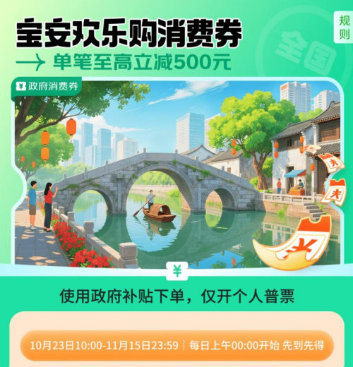 为让消费者享受到年终最后一波政府消费补贴,近日,京东联合深圳等多地政府陆续开启“2025年终消费补贴行动”,携手3C数码品牌厂商带来超多爆款好物,带来京东11.11补贴、厂商补贴、国家补贴、消费券、国家贴息等多重补贴形式,给予消费者更多福利,买手机、电脑、数码享多重补贴低至5折。想要在京东11.11购买3C数码好物,记得先领取宝安消费券再下单!