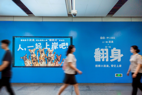 项目正式发布当天,深圳翻身地铁站、北上广深等一线城市热门商圈,都换上了一系列助力小流浪“上岸”的海报与视频,吸引众多市民与网友的关注,齐齐为小流浪加油鼓劲。同时,深圳宝安大悦城现场设有“小流浪变身搜救犬”的科普展区与游戏互动装置,许多市民驻足打卡,拍照留念,并且通过游戏互动获得限量公益周边“金饭碗”,寓意传递“接小流浪的上岸”的好运。