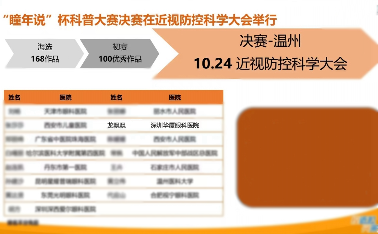 10月24日,由国家眼耳鼻喉疾病临床医学研究中心和温州市女科技工作者协会联合主办的“瞳年说”杯全国近视防控科普大赛总决赛于温州圆满收官。深圳华厦眼科医院小儿眼科专家龙飘飘医生凭借扎实专业知识,从全国参赛科普精英中脱颖而出,荣膺大赛“科普新星奖”。