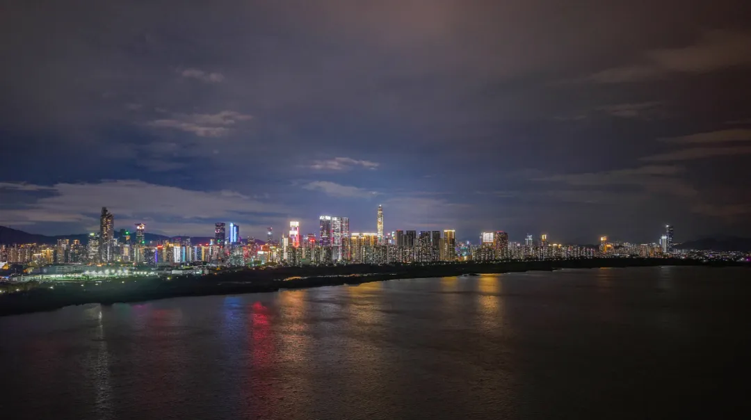 市民中心区域,一场动感澎湃的灯光秀正上演,犹如一座流光溢彩的“城市看台”;而转向深圳湾,则是一幅更为沉静的光影长卷——那里,起伏有致的天际线在夜色中默默发光,层次分明,共同谱写出一曲现代都市的静夜华章。
