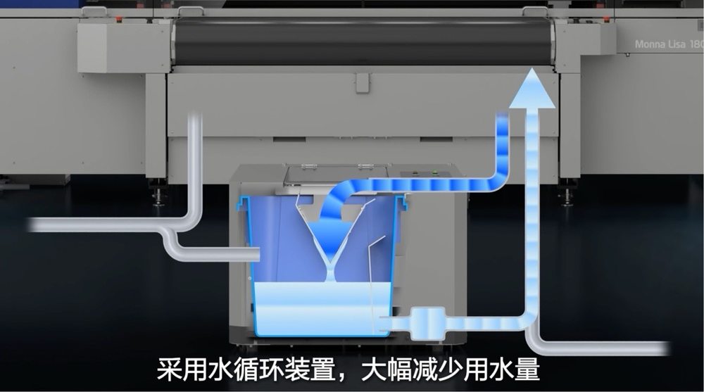 设备内置的水循环装置是此次新品核心环保升级点,在清洁皮带时可循环利用水资源,相比传统设备显著降低水耗。同时,该系统采用紧凑结构设计,占地面积小,能直接连接打印机,不干扰现有工作流程。这一设计不仅助力企业履行环保责任,还能通过节水降低生产运营成本,实现环境与经济效益的统一。除技术与装置外,ML-18000还采用GENESTA活性墨水,通过ECO PASSPORT及GOTS等多项国际环保认证,从源头保障印花过程的环保属相。