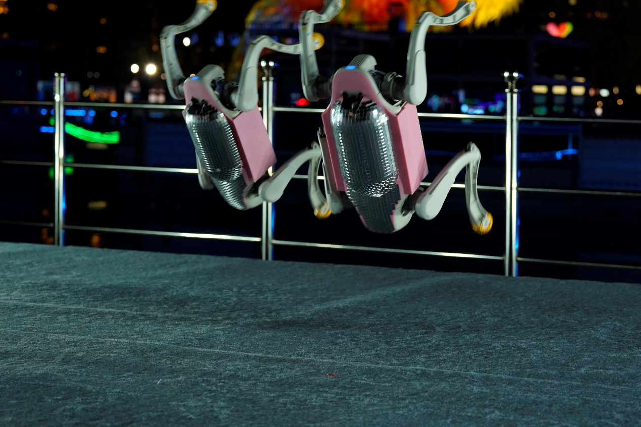 表演间隙,它们还会随观众的欢呼转头互动,偶尔回应“摸头杀”的可爱表现,让硬核科技秒变“治愈系”。