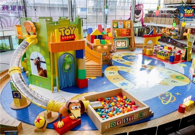 承袭全年的精彩节奏,颐堤港在年末压轴呈献“玩心FUN大”主题活动,将《玩具总动员》的经典魅力引入冬季花园,打造了一个巨型玩具主题空间。通过精心的空间叙事与比例变化,颐堤港邀请顾客“缩小”身形,化身玩具的一员,从玩具的视角与胡迪、巴斯光年等角色并肩展开冒险故事。