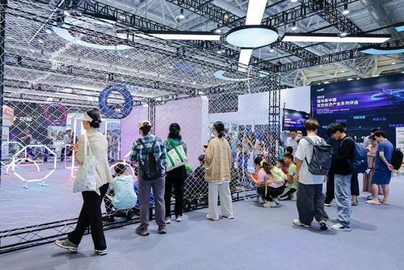 产品展示成热门打卡点。零重力ZG-ONE“鹊飞”载人eVTOL、道和通泰空地一体智慧巡检解决方案、南航大深圳研究院低空数字孪生VR虚拟体验平台等展品,凭借前沿技术与应用价值赢得广泛关注。泽芯无人机模拟器世界杯竞速赛事中国区首发仪式通过多平台直播,单场观看量破百万,“无人机足球”竞技展示区趣味十足,成为现场打卡热点。