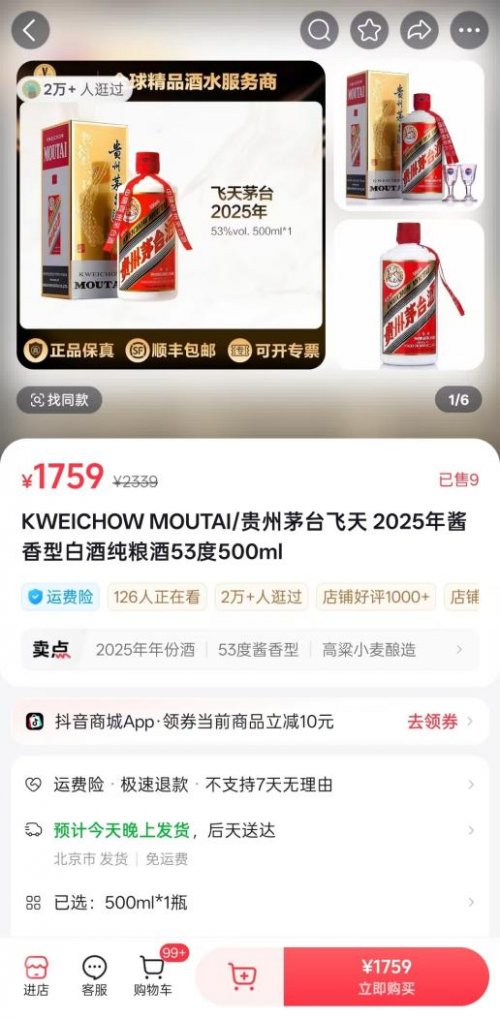 一位北京地区的酒商对记者表示,不担心线上低价促销的冲击。该酒商称,“凭借自己多年的经验,对飞天茅台还是很有信心的,而且经过多年积累,自身和客户合作稳定,客户礼赠、商务用酒还是更愿意选择正规渠道。”他进一步透露,进入“双十一”阶段后,店内动销明显加快,不少老客户提前备货,整体出货节奏比前两个月更轻松,价格反而有些小幅上涨。