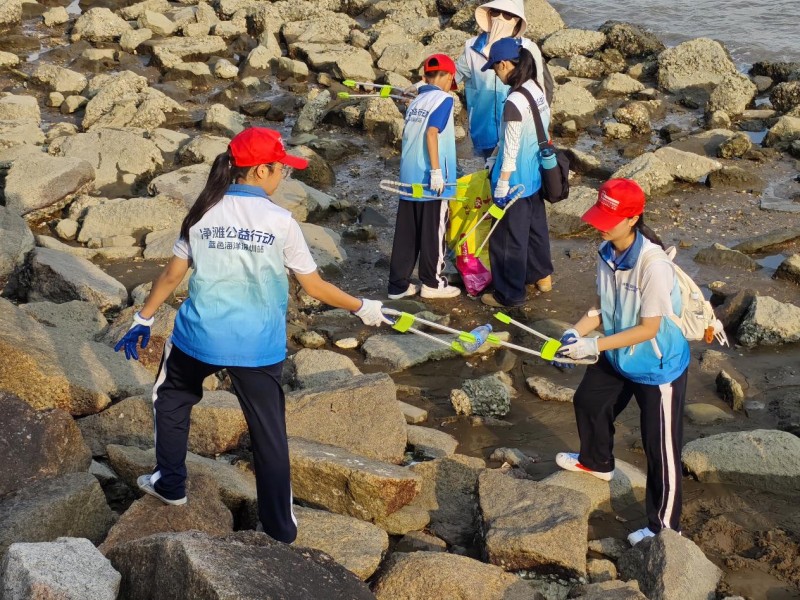 10月18日,宝安一外初中部学子赴栈桥海岸线,以双手为刃清理垃圾。弯腰捡拾、分类收纳,用行动守护蔚蓝星球。少年身影与碧海相映,每一份坚持都在为海洋减负,让环保理念扎根青春,让海岸线重焕洁净光彩!
