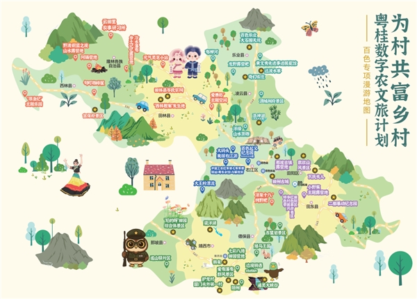 顺应片区组团发展的趋势,项目推出了粤桂协作农文旅百色漫游路线图,串联起全市农文旅路线和景点,开发上线“乐游百色”云服务小程序,整体助力百色乡村旅游影响力、推动乡村农文旅融合发展。