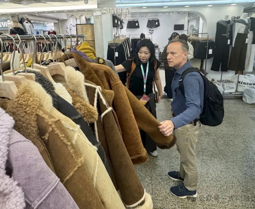 11月18日,参加完世界服装大会相关活动的部分外国客商来到2025虎门富民时装节现场,在市场进行商务对接。据了解,本次采购节旨在展示富民时装城“产业基地、市场聚集、原创设计、厂价直销”的特色优势,加强对富民品牌与原创品牌商家产品的宣传推广,助力拓展销售渠道、提振商户信心,推动采购对接与成交提升。