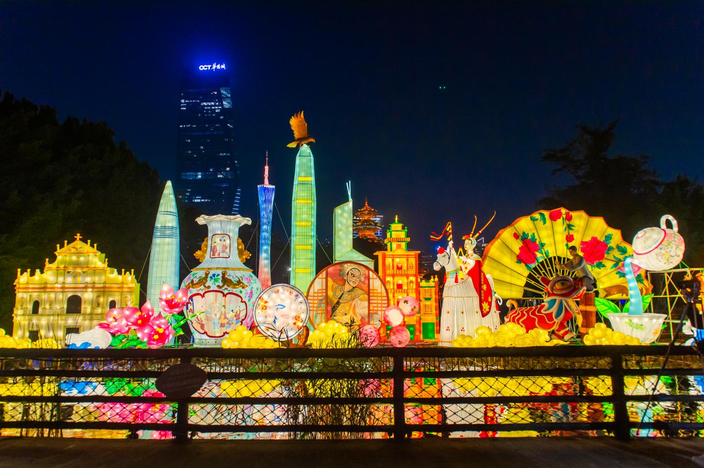 作为每年重要的深圳城市文旅活动,深圳锦绣中华灯会今年以更开放、更年轻的姿态亮相。景区以“非遗焕新”为核心理念,在53万㎡空间内打造40余组非遗主题大型灯组,从传统福瑞意象到多民族文化元素,从岭南非遗纹样到新媒体光影互动,在熟悉的场景中重新呈现中国新年的视觉语言,让游客“不止是走过灯会,而是走进灯会”。以龙首鱼身为意象的主灯组《鳌鱼游天》恢宏亮相,寓意祥瑞腾空;灯组《非遗大湾区》将岭南传统技艺与湾区城市地标融于光影,呈现文化交融的时代画卷……此外,今年灯会首次引入故宫文化“灯光里的中国”IP灯组,故宫深厚的宫灯文化与非遗彩灯技艺深度融合。景区53万㎡光影规模与文化深度全面升级,为深圳打造兼具艺术高度与大众审美的非遗灯会新标杆。