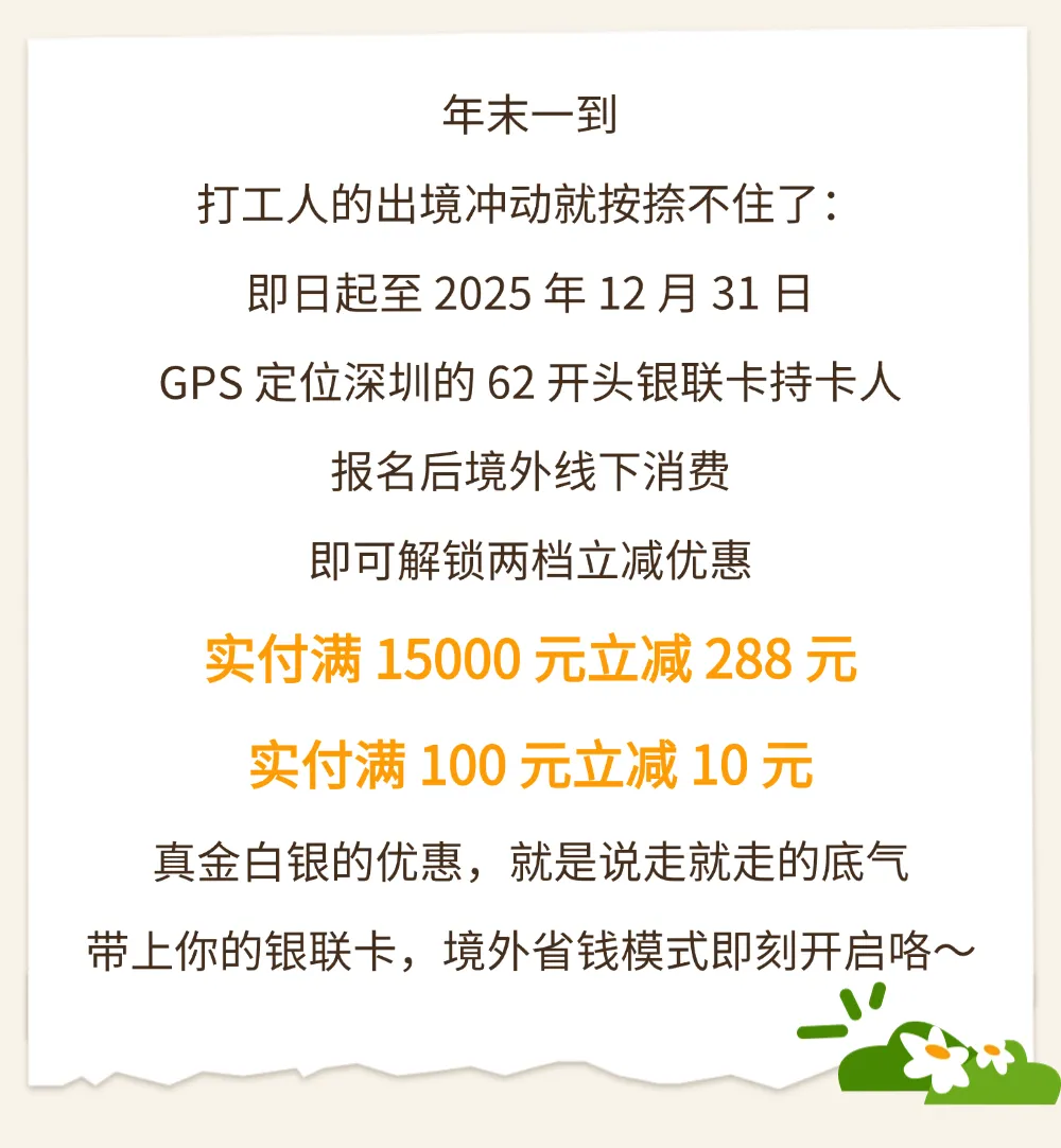 深“惠”全球|最高立减288元!境外刷银联卡即有机会参与满减