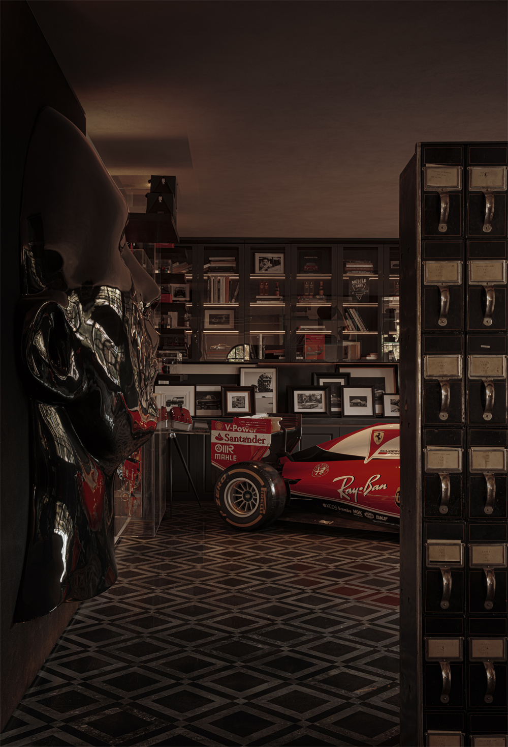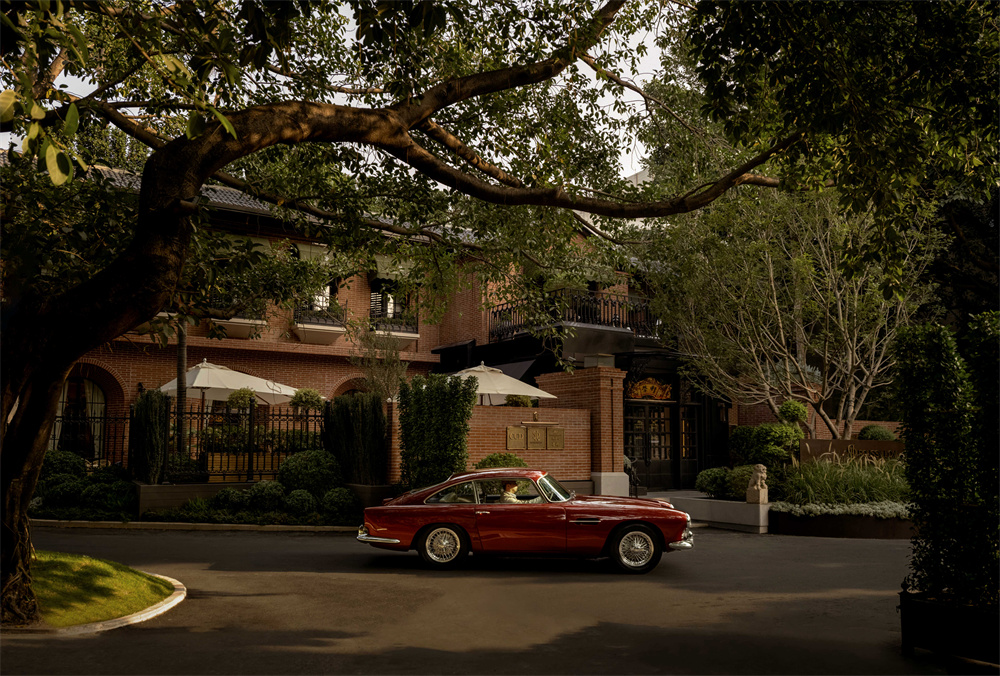 入口右侧的限时展区以深色木材与玻璃构筑的沉稳基调打开文化气场,营造静谧克制的“私人收藏厅”氛围,几何石材地面与博物馆式陈列让机械、速度与文化在此缓缓铺展。作为雍熙荣的首个品牌合作,今年11月,法拉利将Kimi Räikkönen的Ferrari SF16-H(2016 Brazil Grand Prix 原车)及跃马新作Amalfi带入空间,注入鲜明的速度美学。展陈亦引入了经典老爷车收藏——梅赛德斯-奔驰190、路虎卫士Series II、阿斯顿·马丁DB4等,以沉稳复古的绅士情怀塑造对话场景,演绎凝聚品味、激发谈资的文化剧场。