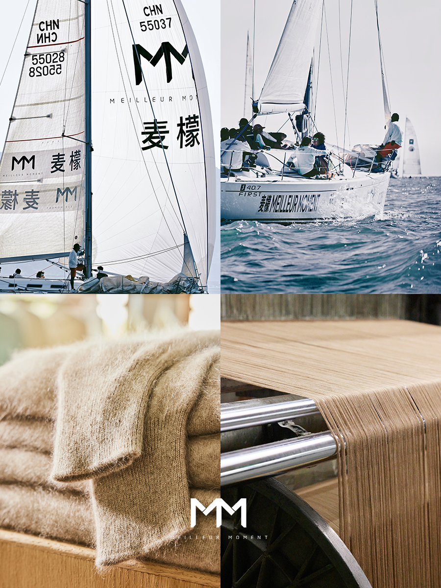 上:麦檬·骁遥帆船队比赛画面/下:麦檬品牌羊绒系列
