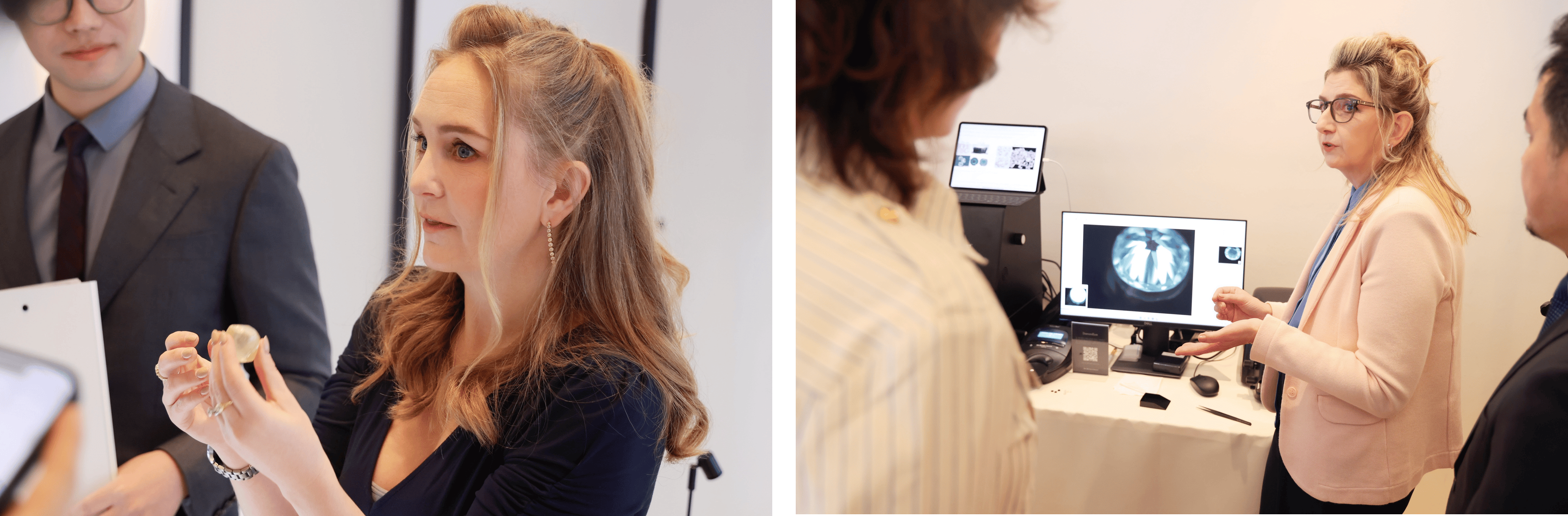 戴比尔斯钻石研究机构钻石教育总监Jodine Bolden、研发科学家Samantha Sibley讲述天然钻石知识