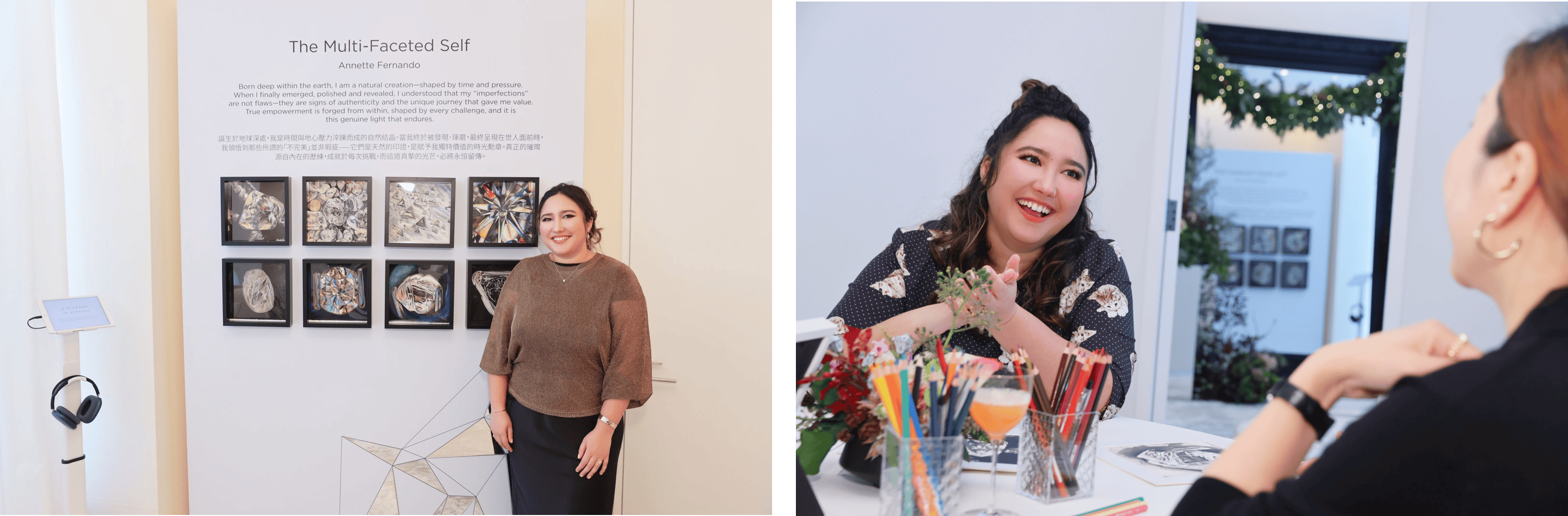 活动特邀艺术家Annette Fernando,于“恒久传世之礼 天然钻石馈赠”系列活动参展作品:《多面自我》(The Multi-Faceted Self)